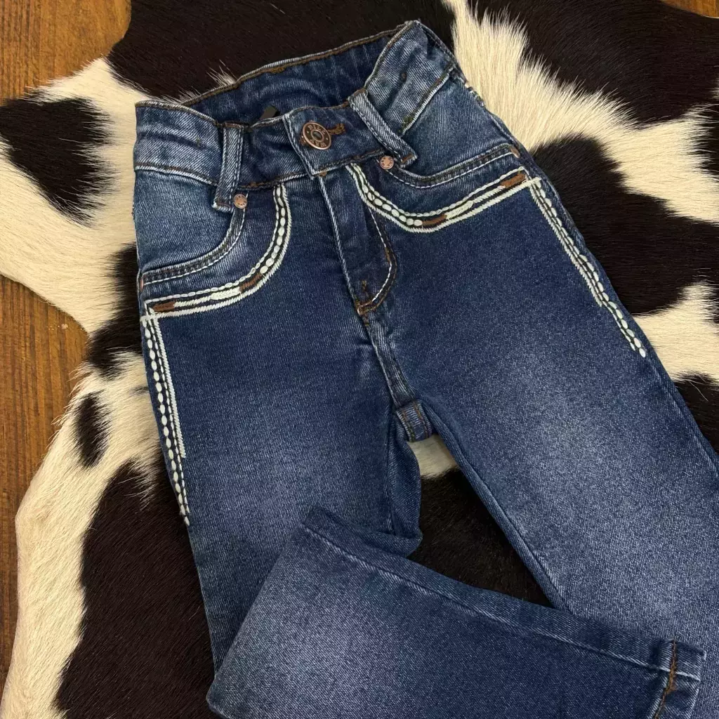 A mini cowgirl merece um look cheio de estilo e conforto! A Calça Bill Way Infantil Flare Jeans Stone traz um toque moderno com sua modelagem flare e detalhes bordados em rosa e off white. Feita em jeans stone com lavagens claras e costura branca, essa peça garante liberdade para as pequenas arrasarem no dia a dia ou em eventos country.
